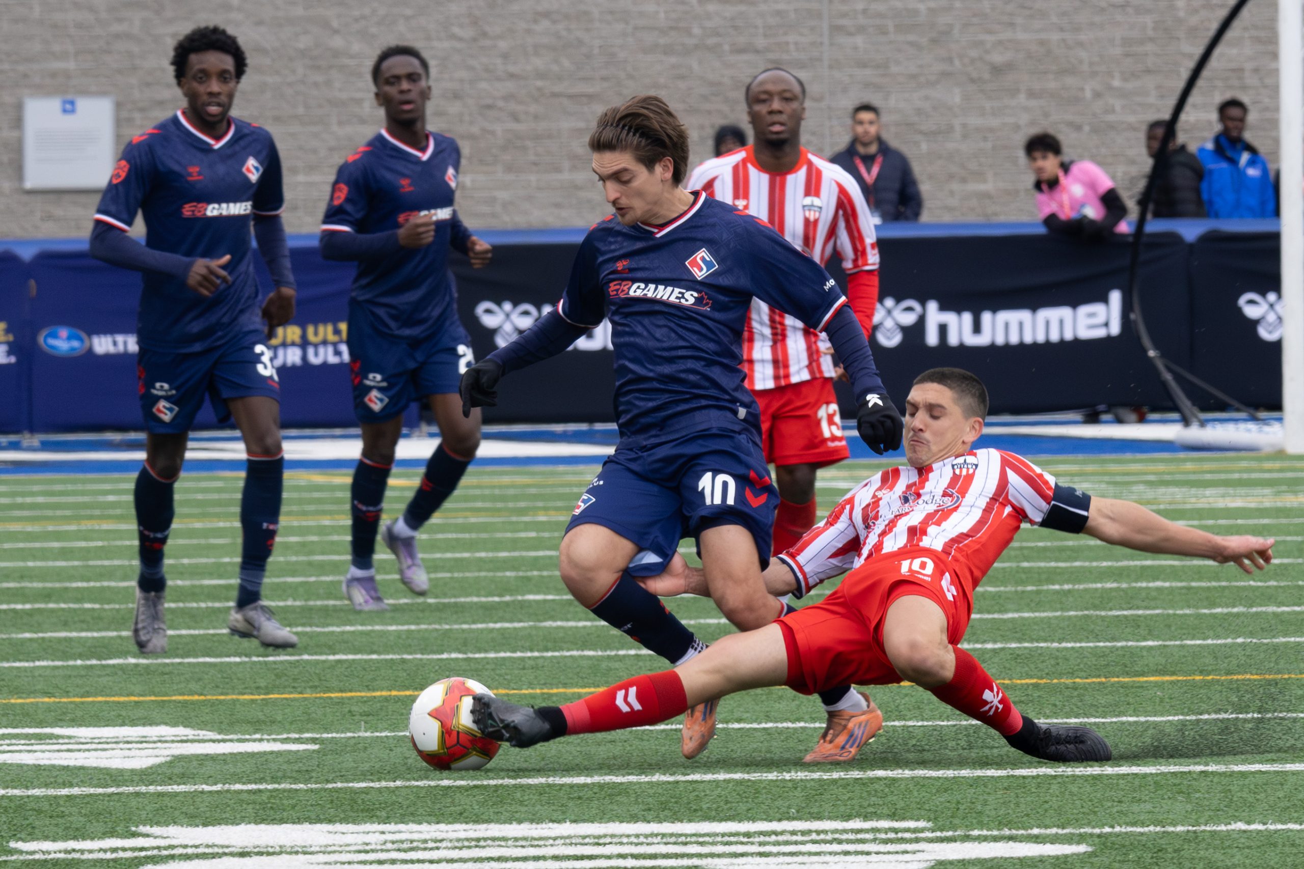 Clave el bloque del mediocampo en sector defensivo cuando FC Supra necesita recuperar la pelota. Sissoko, Biello, junto a Bahiya y Choiniere, hicieron un trabajo disciplinado para cerrar todos los espacios del medio y ganar esa zona. Por parte de Atlético Ottawa, debutó el delantero Santiago López, sin embargo ha sido poco determinante en el ataque del vigente campeón de la CPL.